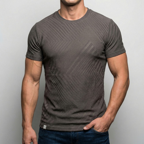 تیشرت مردانه ژاکارد پریمیوم طرح هندسی قهوه ای