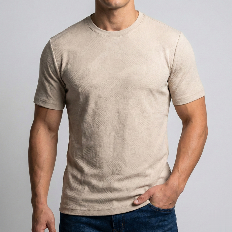 تیشرت مردانه یقه گرد ژاکارد طرحدار کرم