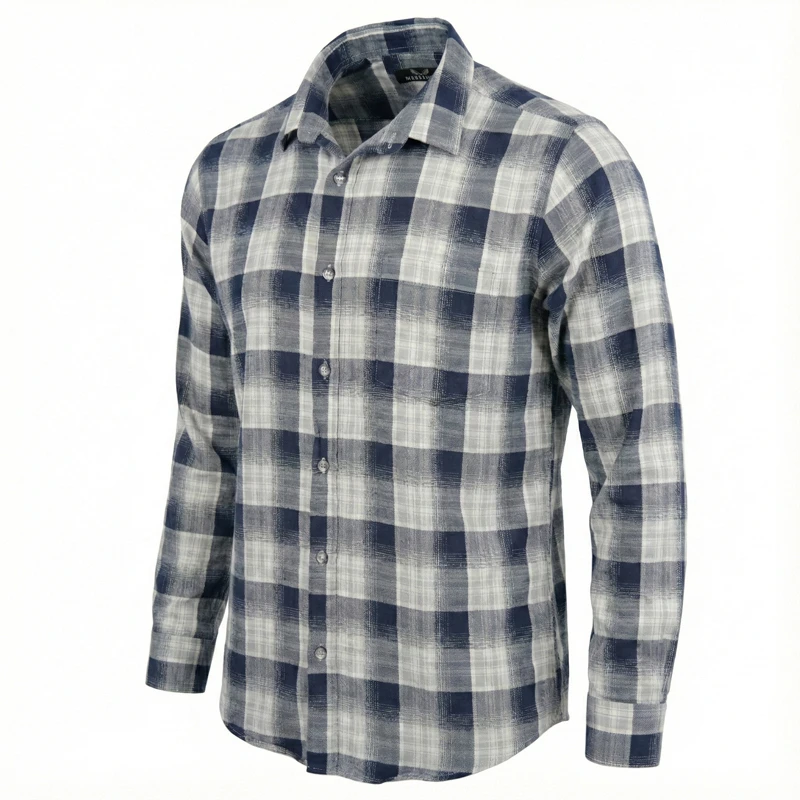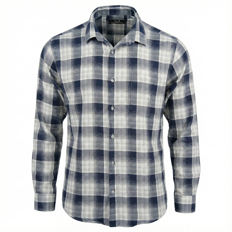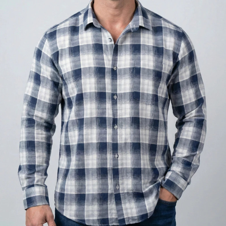 پیراهن مردانه چهارخانه آستین بلند رنگ سرمه ای