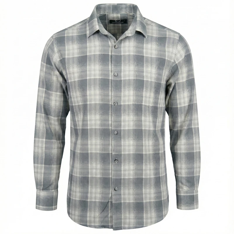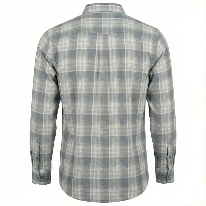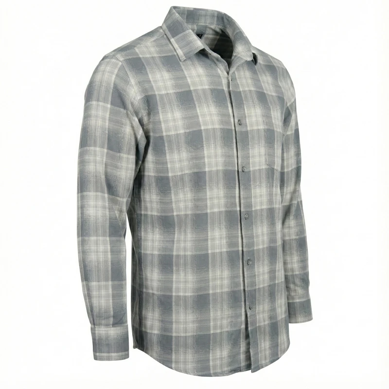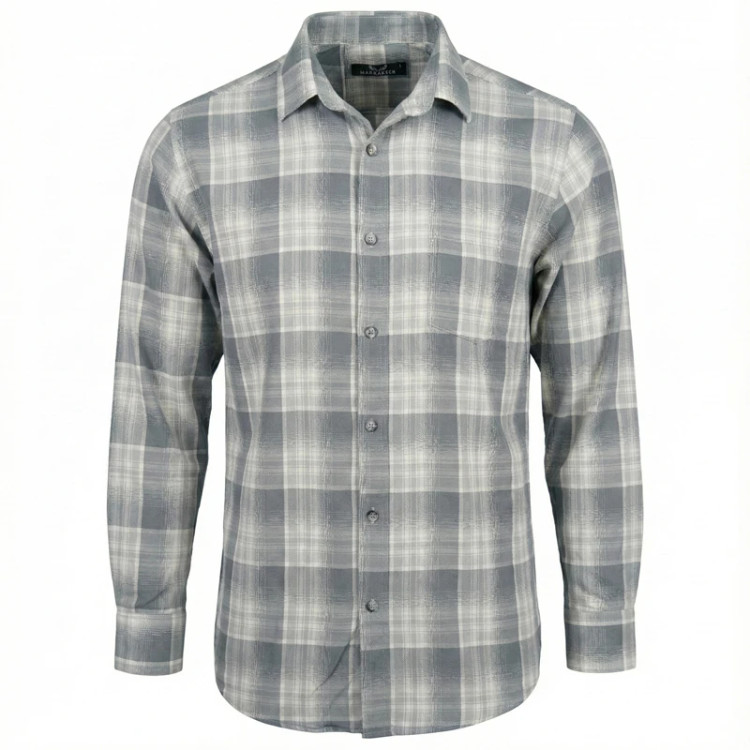 پیراهن مردانه چهارخانه آستین بلند رنگ طوسی