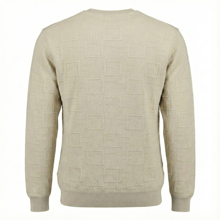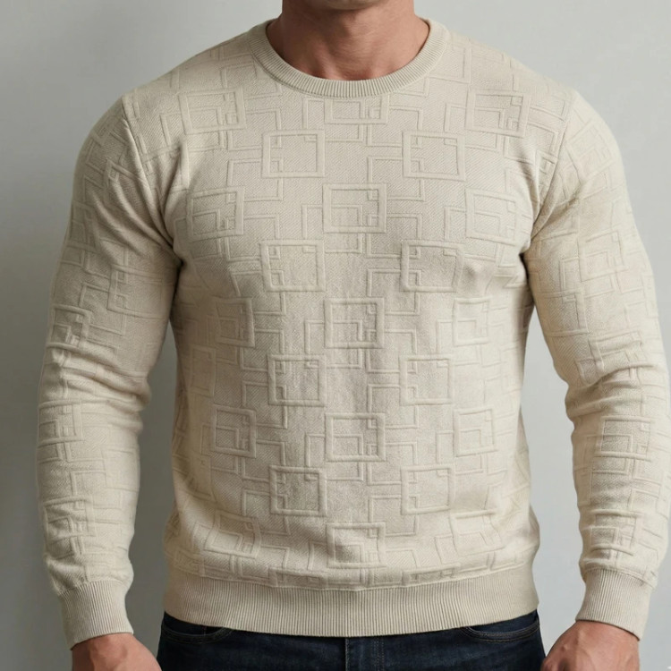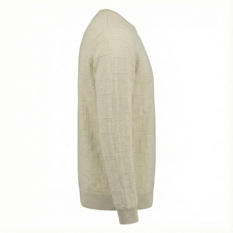 طرحهای هندسی روی لباس به صورت بافت ژاکارد در تار و پود پارچه ایجاد شدهاند که علاوه بر زیبایی، دوام بسیار بالایی دارند. ترکیب الیاف پنبه و پلیاستر باعث شده تا لباس هم لطافت لازم را داشته باشد و هم فرم ایستایی خود را روی بدن حفظ کند که برای یک لباس "اسلیم فیت" بسیار مهم است.