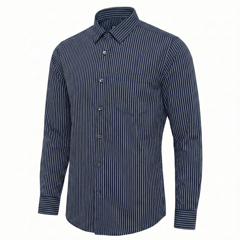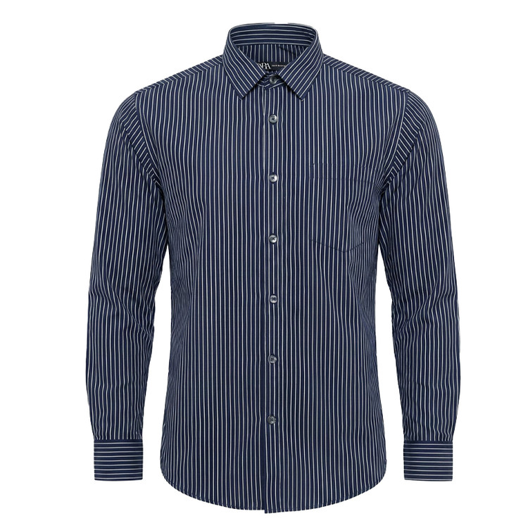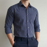 پیراهن نخی راه راه مردانه مدل کلاسیک راحت رنگ سرمه ای