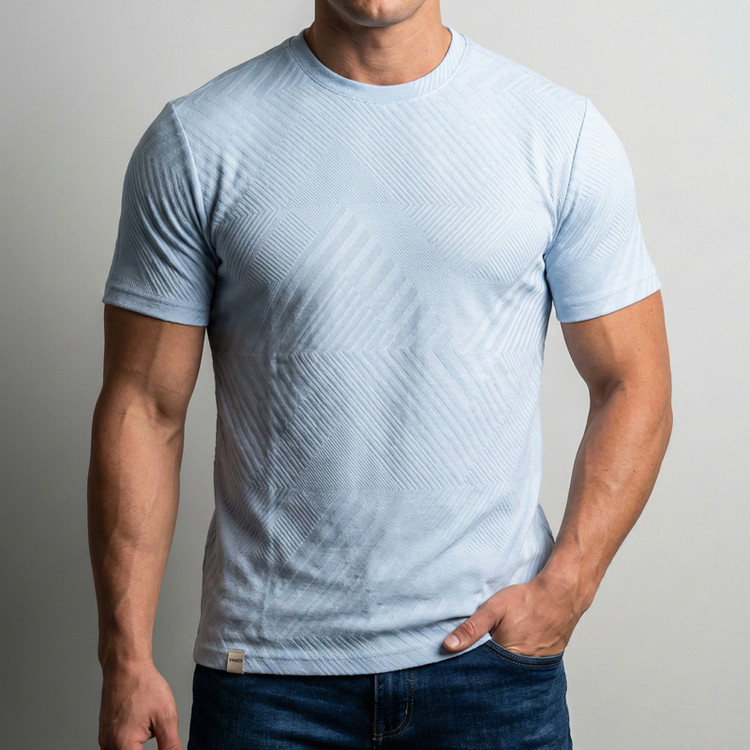 تیشرت مردانه ژاکارد پریمیوم طرح هندسی آبی