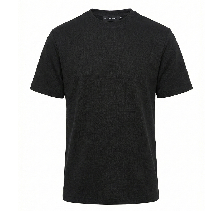 تیشرت مردانه یقه گرد ژاکارد طرح‌دار مشکی