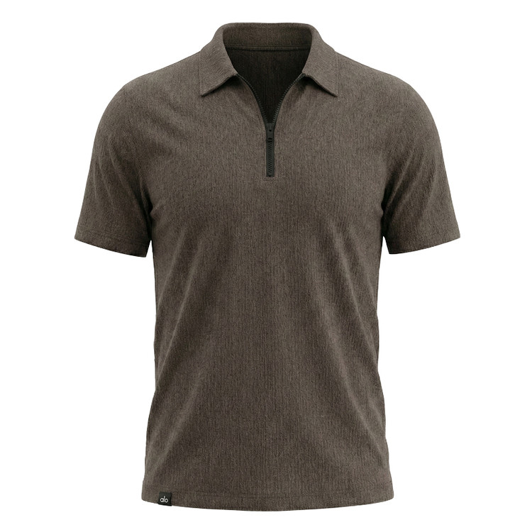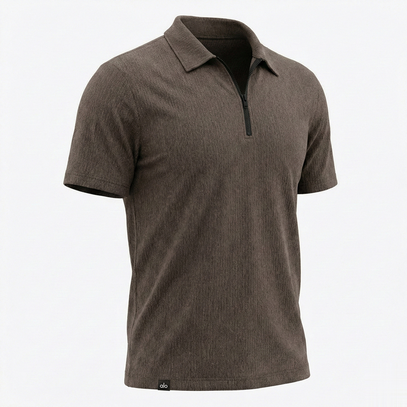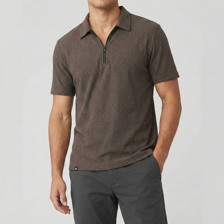 پولوشرت مردانه مدل نیم زیپ بافت‌دار قهوه ای