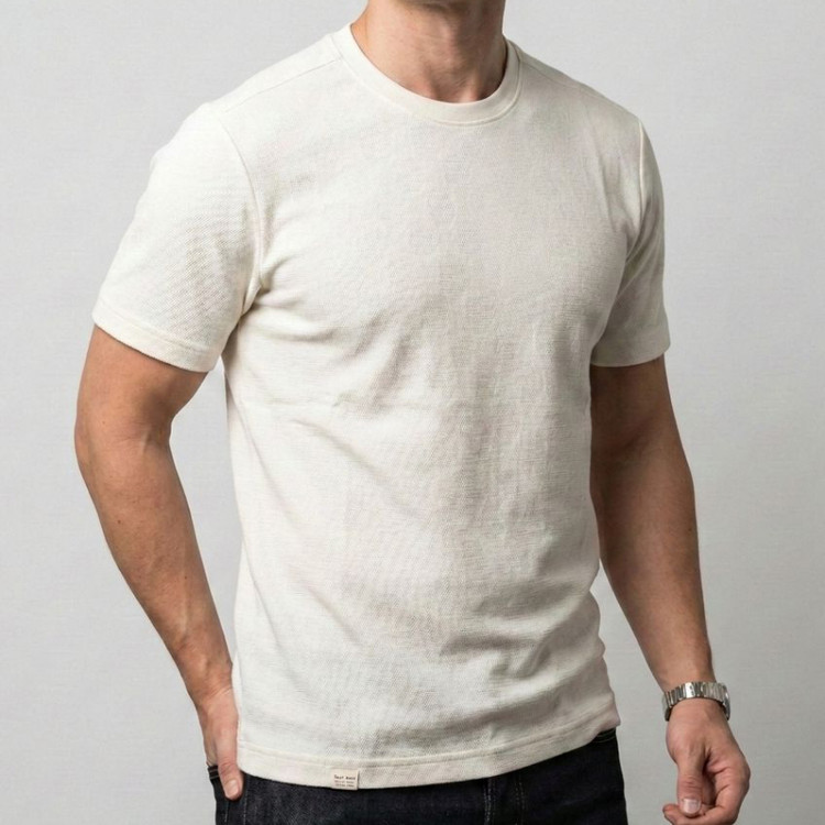 بافت هندسی متمایز: طرح ژاکارد بسیار ظریف که مستقیماً در بافت پارچه تنیده شده و ظاهری لوکس و دستدوز به تیشرت میبخشد.
