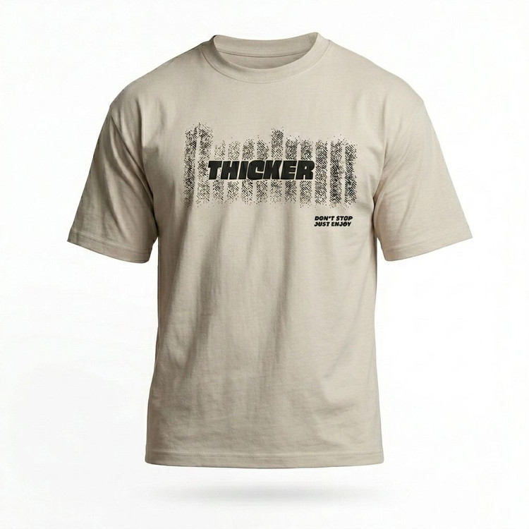 تیشرت یقه گرد چاپی قواره لش با پارچه ماکان استخوانی