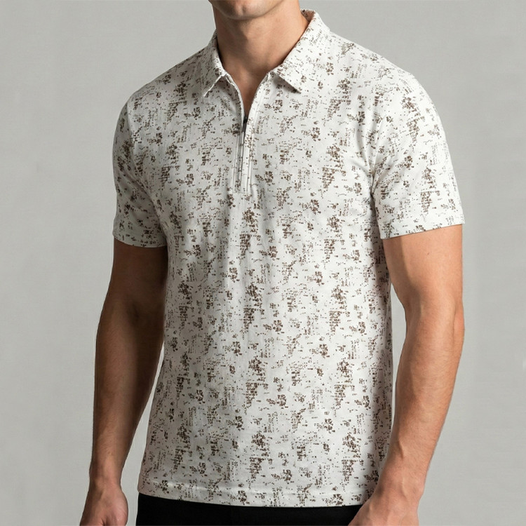 پولوشرت مردانه مدل نیم‌زیپ طرح‌دار​ قهوه ای