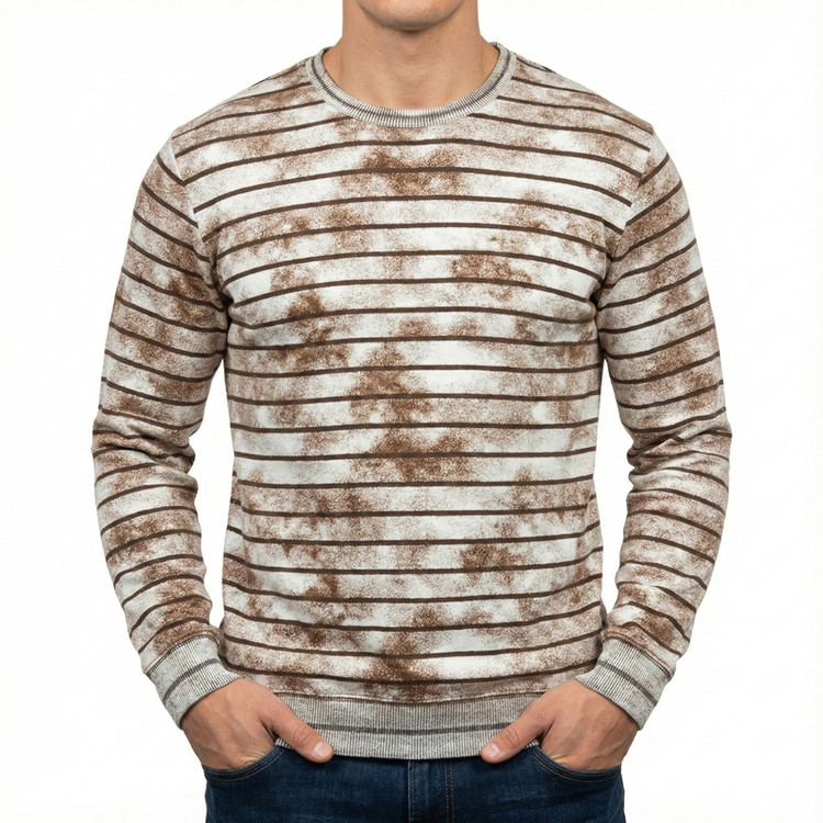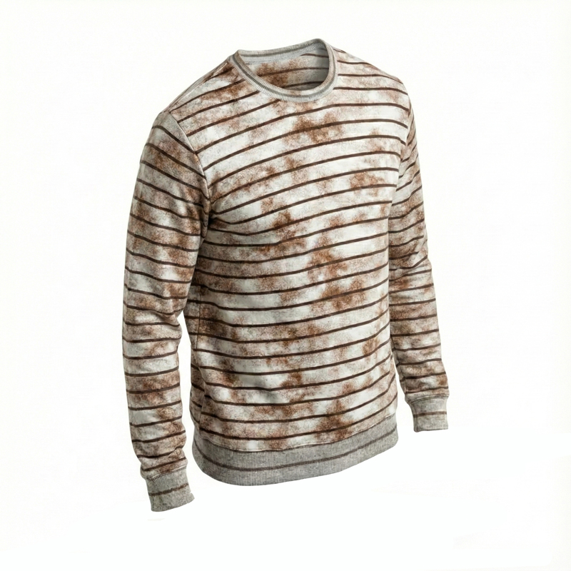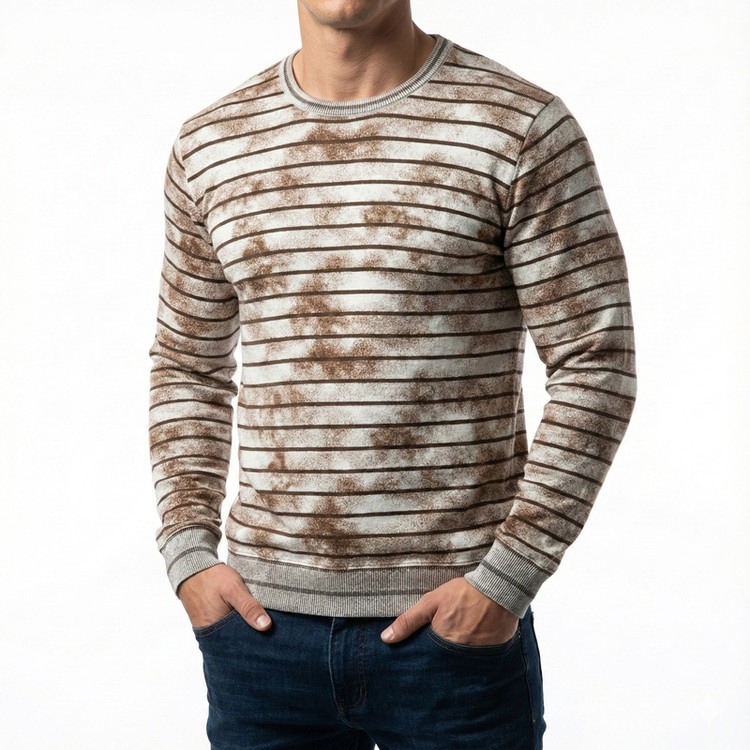طراحی ترندی و خاص: طرح راهراه با افکتهای سایهروشن (که خاصیت شستهای آنزیمی است)، ظاهری مدرن و کمی "گرانج" (Grunge) به لباس داده که به راحتی با انواع شلوار جین و کتان ست میشود.