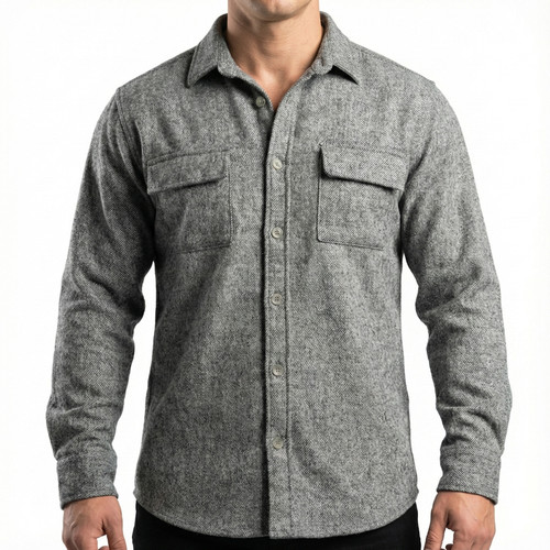 پیراهن آستین بلند یقه ایستاده مردانه مدل پشمی کد 7859