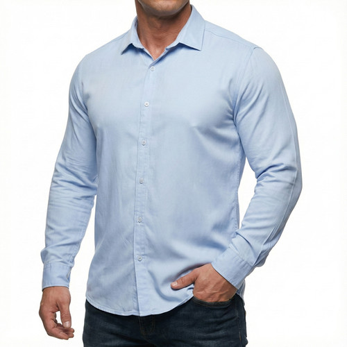 پیراهن مردانه آستین بلند جنس یوسل رنگ آبی