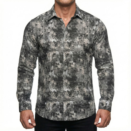 پیراهن مردانه آستین بلند کنفی طرحدار رنگ طوسی