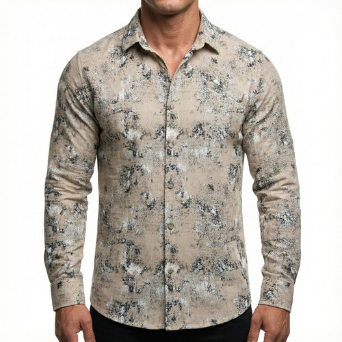 پیراهن مردانه آستین بلند کنفی طرحدار رنگ کرم