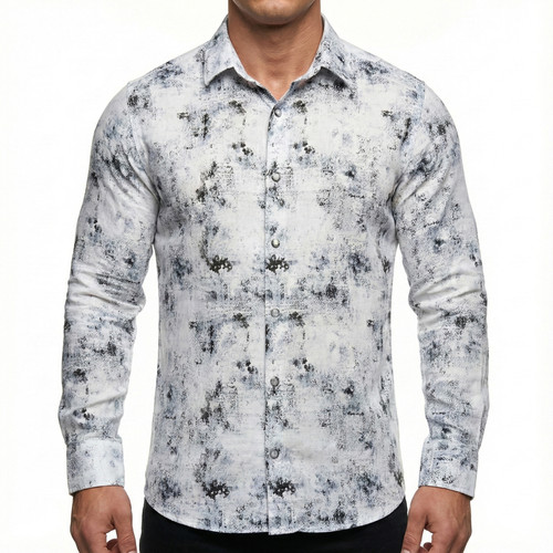 پیراهن مردانه آستین بلند کنفی طرحدار رنگ سفید
