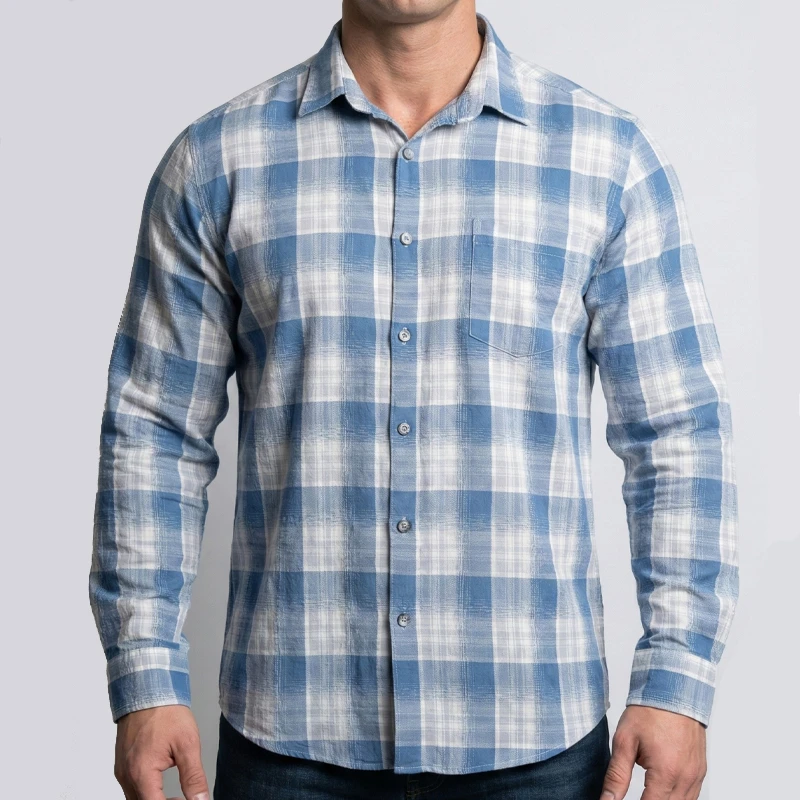 پیراهن مردانه چهارخانه آستین بلند رنگ آبی