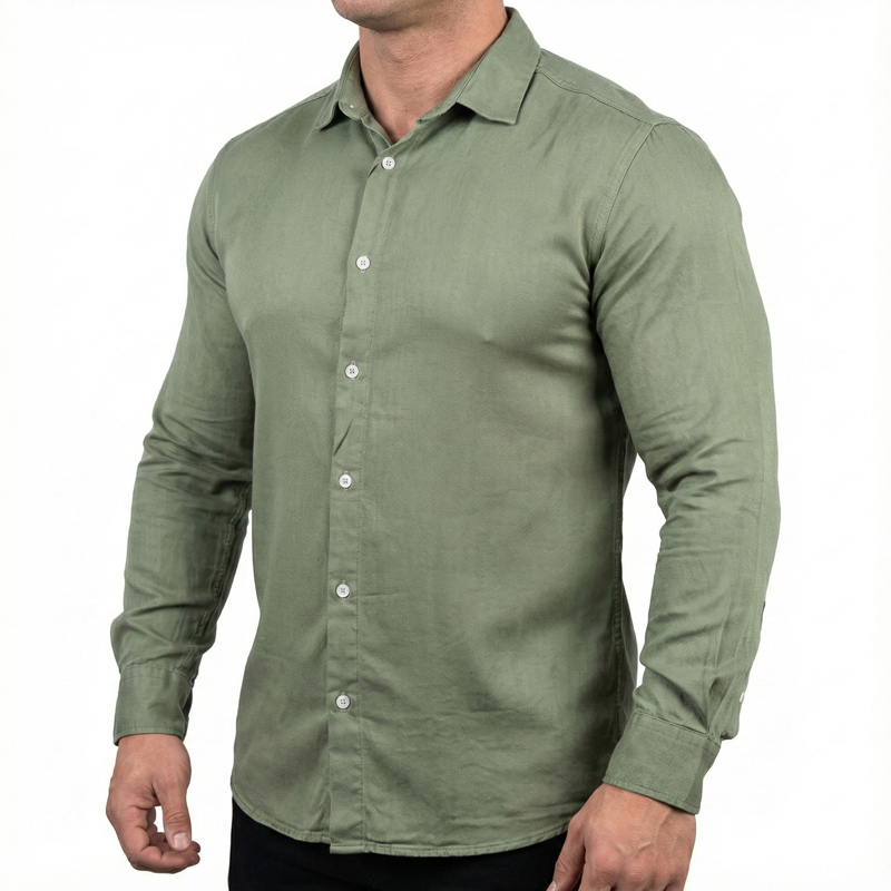 پیراهن مردانه آستین بلند جنس یوسل رنگ سبز