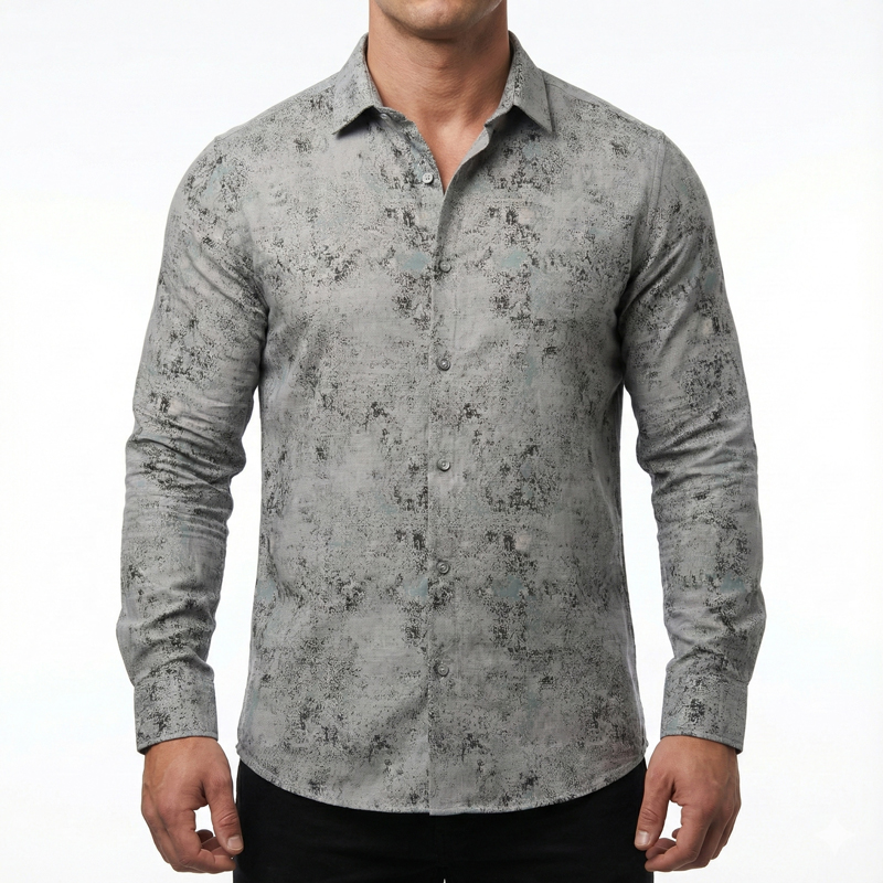 پیراهن مردانه آستین بلند کنفی طرحدار رنگ طوسی